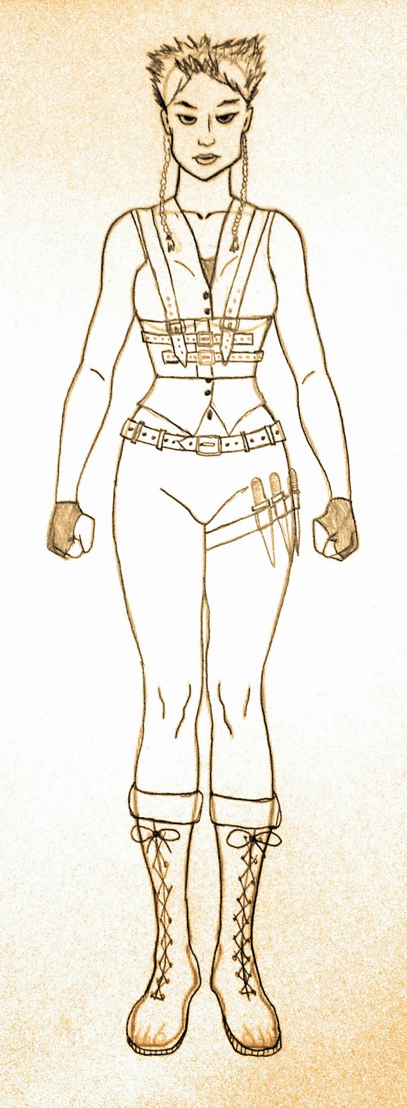 Im zweiten Teil haben wir ja bereits ein paar Bilder herausgesucht, um die Kleidung unserer Protagonistin näher zu bestimmen. Jetzt fügen wir diese Bilder zu einer Zeichnung zusammen. Dabei ist nicht wichtig, wie gut ihr zeichnen könnt, es ist nur wichtig, dass ihr am Ende ein Bild habt, das euren Protagonisten zeigt! Die Zeichnung selbst muss keiner sehen, ihr benutzt sie nur als Hilfe, um euren Character selbst besser beschreiben zu können.
